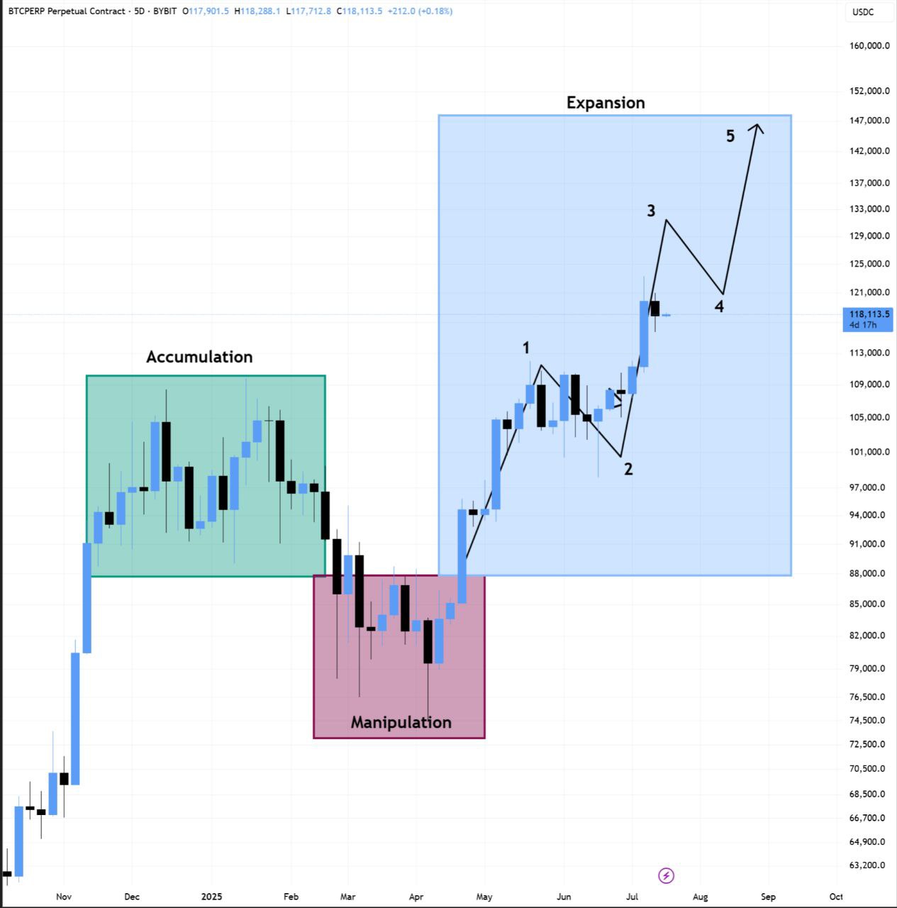 “This will pump BTC above $130K and will also mark the local top. After that, there’ll be a final leg up in Q4 and BTC will peak above $160,000.”