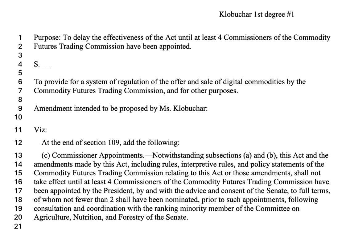 US senators are preparing to weigh amendments to the Digital Commodity Intermediaries Act (DCIA), a long-awaited crypto market structure bill, with decentralized finance emerging as one of the contested areas.