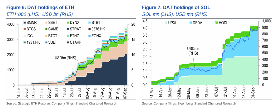 The boom in digital asset treasury (DAT) companies — fueled by the success of Strategy’s Bitcoin-buying — has shone a spotlight on cryptocurrencies such as Bitcoin, Ether and Solana. However, that spotlight has dimmed in recent weeks as the market net asset values (mNAVs) of many DATs collapsed, exposing smaller firms to growing risks, Standard Chartered warned Monday.