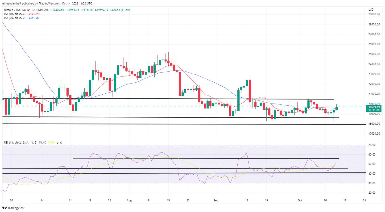 Bitcoin (BTC) moved towards the $20,000 level on Friday, as uncertainty in crypto markets eased, following the latest U.S. inflation report.