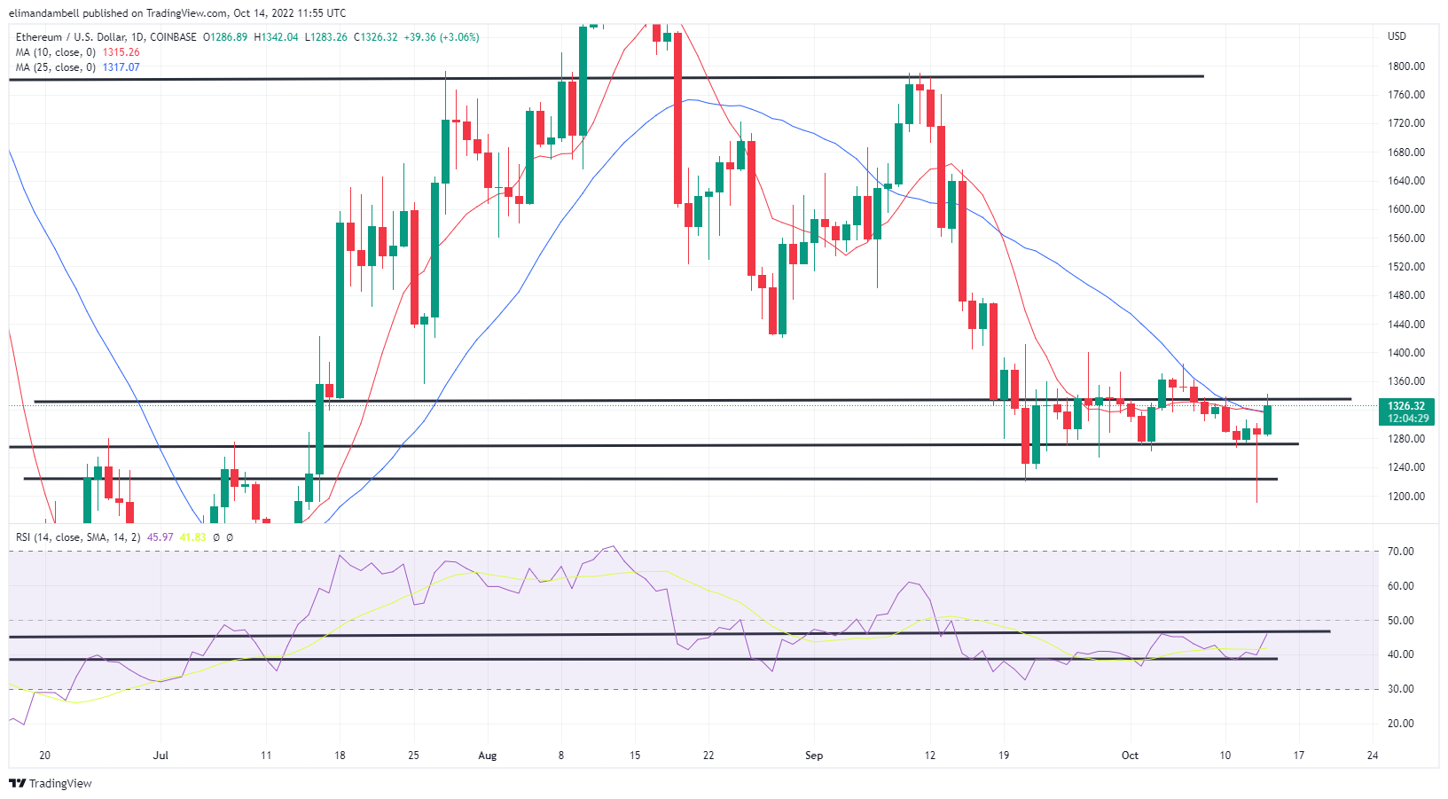 Ethereum was trading higher on Friday, as market volatility eased, following the latest U.S. inflation report. Core inflation rose 0.6%, with consumer prices up to 8.2%, higher than the expected 8.1%. Despite this, traders seem to have breathed a sigh of relief, as the uncertainty surrounding the report has now passed. Bitcoin moved closer to $20,000 on the news.
