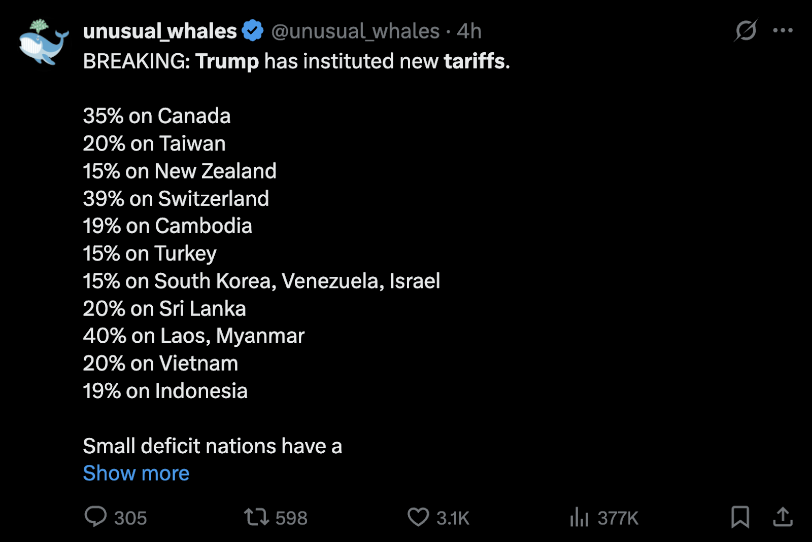 Following Bitcoinโs negative response to US President Donald Trumpโs new series of tariffs against Canada, Taiwan, South Korea, Vietnam and a handful of other countries, ETH price sold off to $3,600.ย