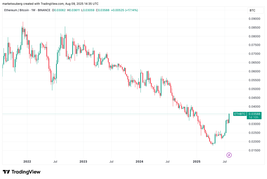 Against Bitcoin (BTC), Ether still has much ground to reclaim.