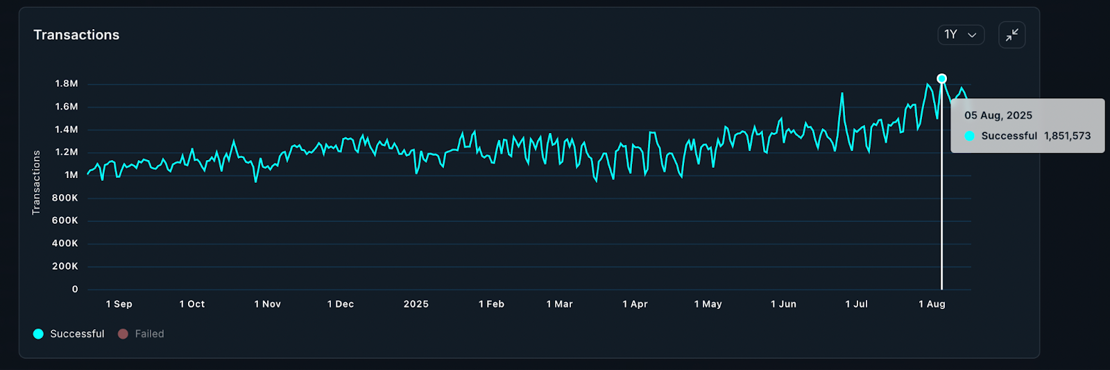 More than 46.67 million transactions were recorded in July, fueled by stablecoin transfers, DeFi, and layer 2 growth.