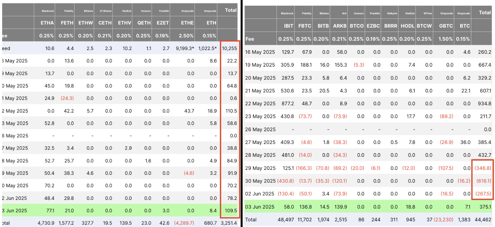 On the other hand, spot Bitcoin ETFs broke their 10-day streak of inflows last week, recording outflows for three consecutive days between May 29 and June 2, totaling $1.23 billion.