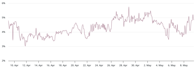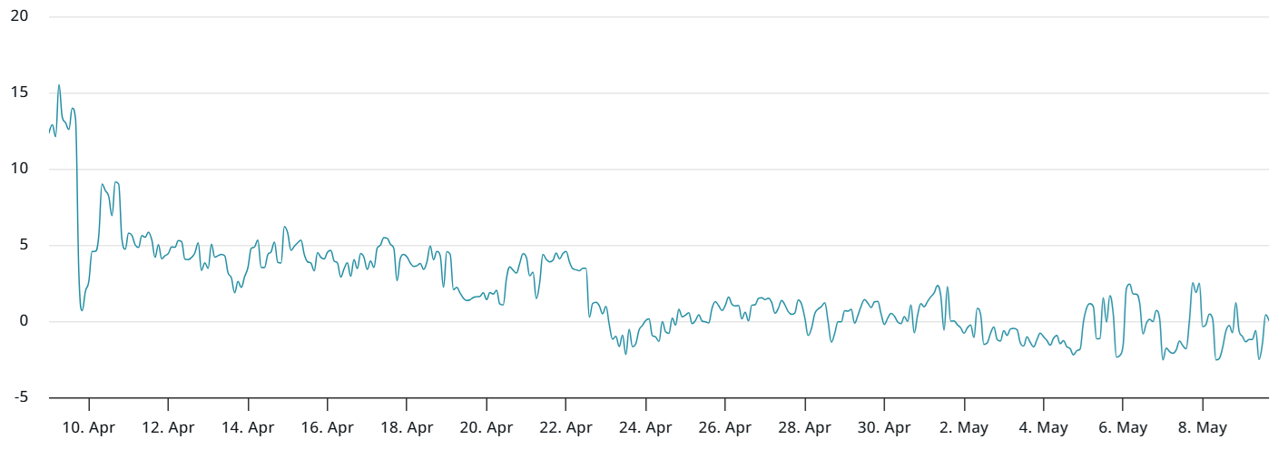 The muted enthusiasm following Etherโs recent bullish momentum can be partly attributed to the sharp 85% drop in Ethereum network fees from January to April. Reduced network activity lowers overall demand for ETH and negatively affects net staking yields, as the protocolโs burn mechanism relies on competition for data processing.