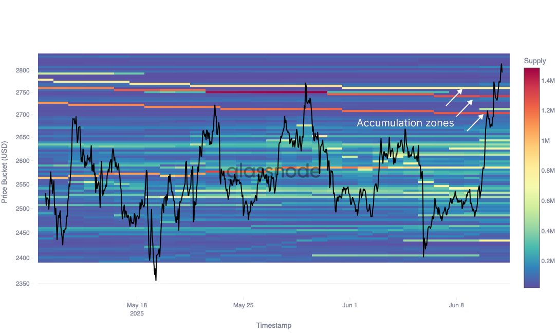 Just like how strong levels above can pose resistance, those below can be a center of support instead. As such, itโs possible that the role of the $2,700, $2,740, and $2,760 supply walls would now change. โThese investors accumulated during consolidation and now will potentially form a strong support zone,โ notes Glassnode.