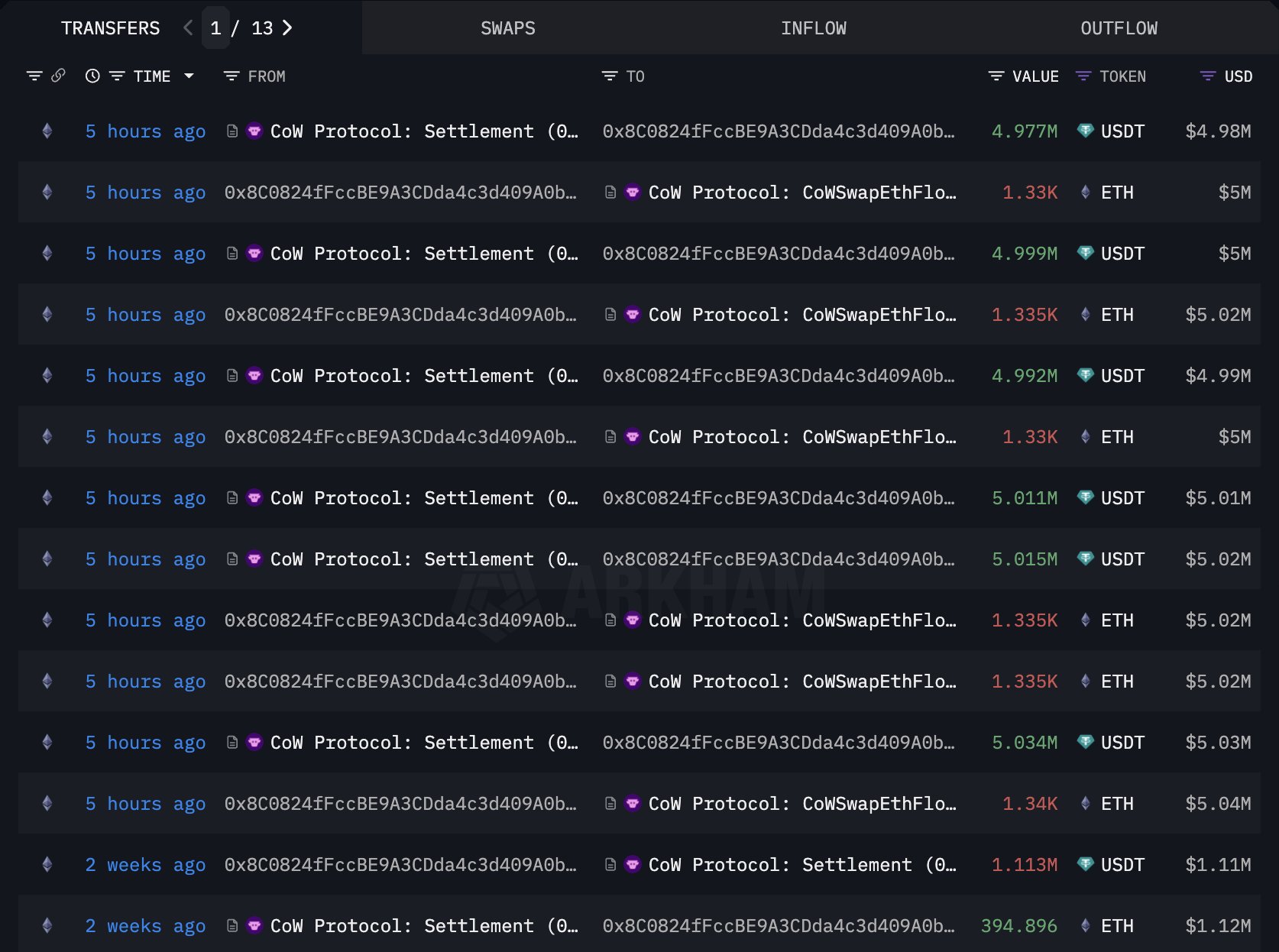 On Tuesday, Ethereum address “0x8C08…” offloaded 8,005 ETH for about $30.03 million, at an average price of $3,751, according to data resource Lookonchain.