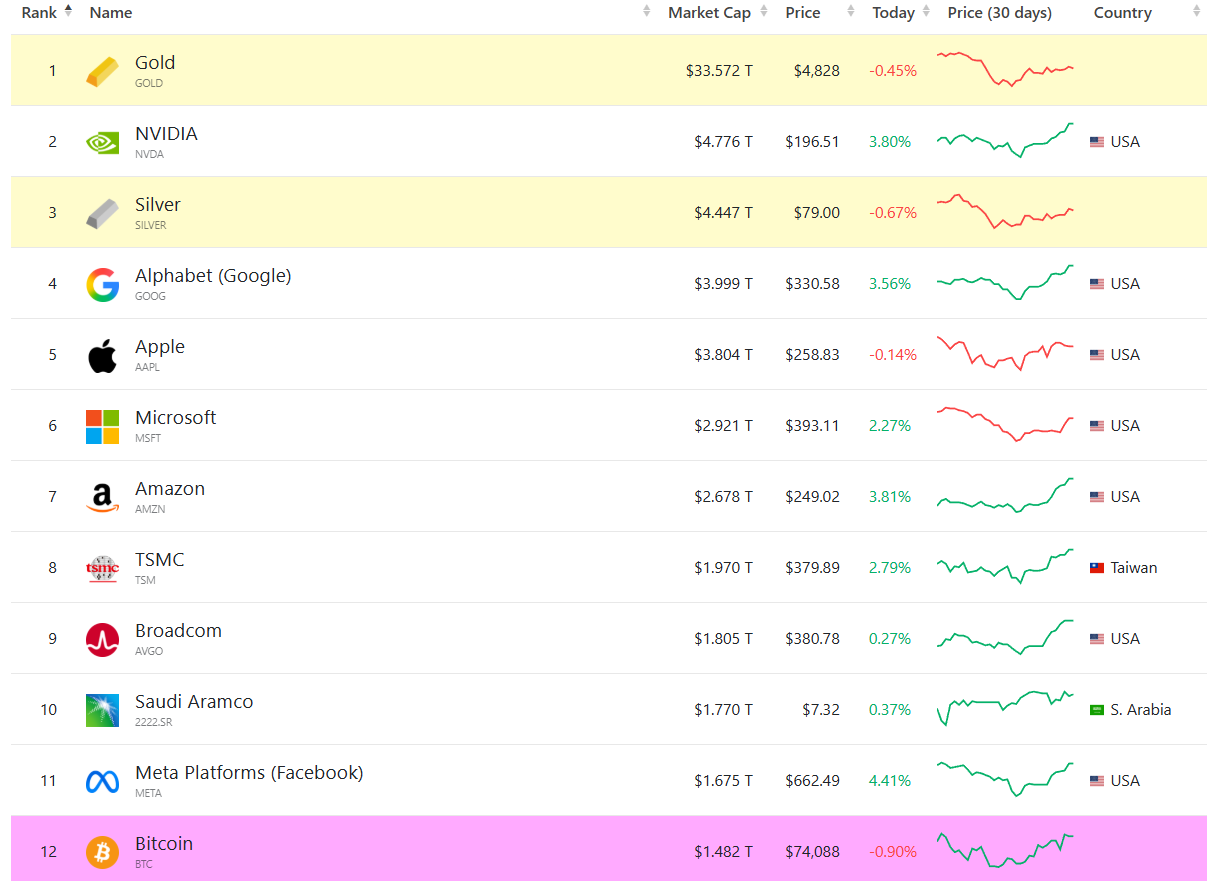 Regardless of the timeline, a Bitcoin rally to $250,000 would require Bitcoin’s price to increase by about 3.3-fold and implies a $5 trillion market capitalization. This would make BTC the world’s second-largest asset after gold, up from the 12th spot, according to CompaniesMarketCap data.