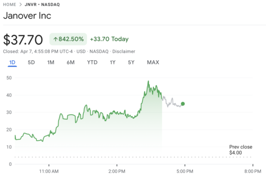 Janover is a real estate financing company that connects lenders and buyers of commercial properties. The company stock price saw an 840% rise on April 7 as part of the deal.
