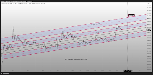 Although a $9 target might seem a lot, as it would be far higher than XRP’s current all-time high of $3.40, it is quite conservative compared to some more extravagant predictions circulating within the XRP community. However, the $9 projection is the most realistic target based on the Gann angle resonance grid.