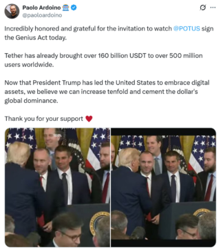 President Trump signs GENIUS Act. Source: Paolo Ardoino