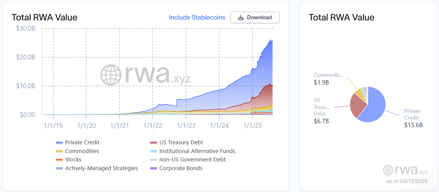 So far, the nearly $26 billion tokenization market has largely centered on private credit and government bonds. But as Beeson noted, the disruption will extend far beyond those segments, encompassing “corporate bonds, credit and credit funds, commodities, equities, real estate funds, private equity funds, and ultimately private equity and real estate assets themselves.”