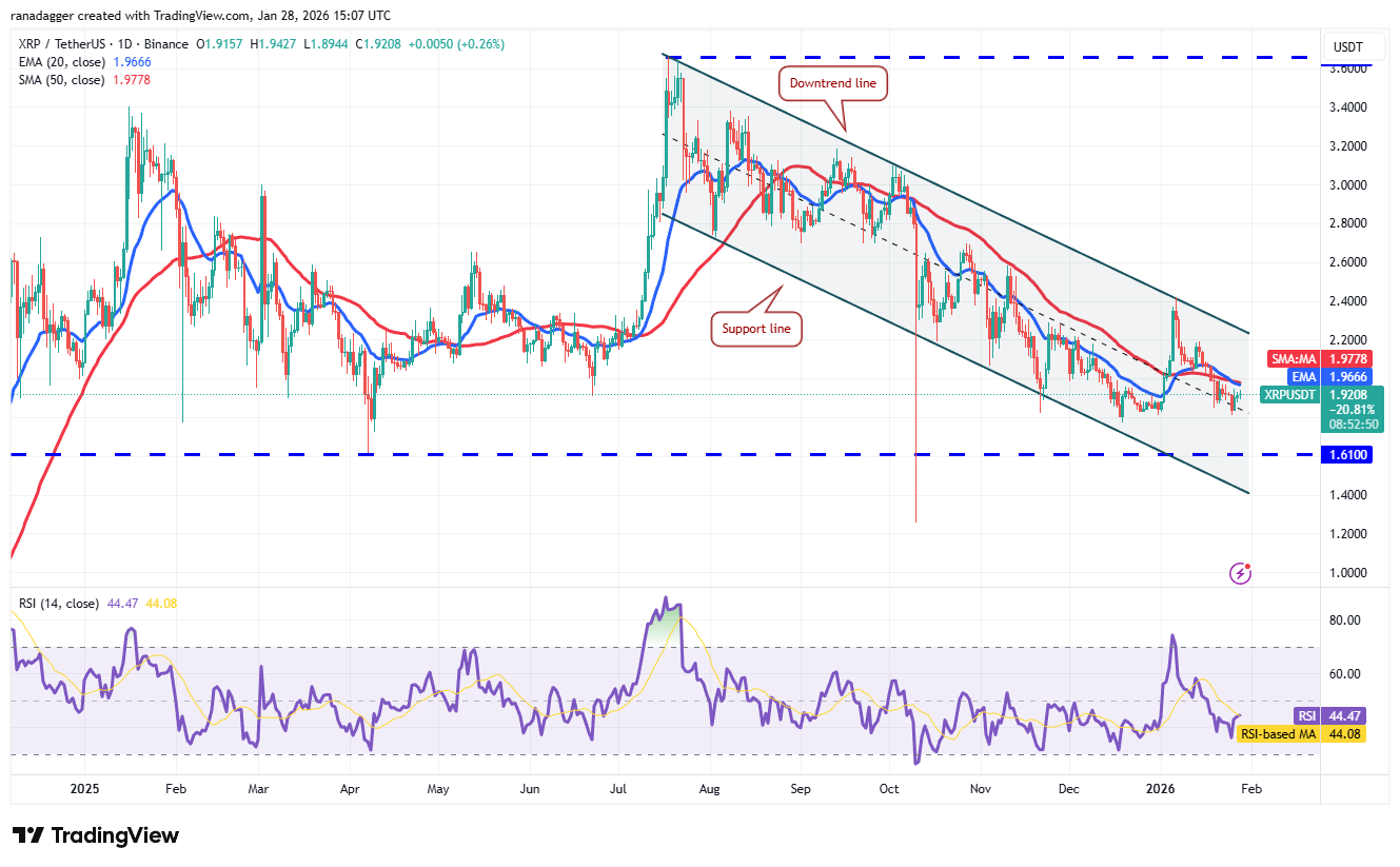 Sellers will attempt to pull the XRP price below the $1.77 level. If they can pull it off, the XRP/USDT pair may descend to the vital support at $1.61. Buyers are expected to fiercely defend the zone between the support line of the descending channel pattern and the $1.61 level.