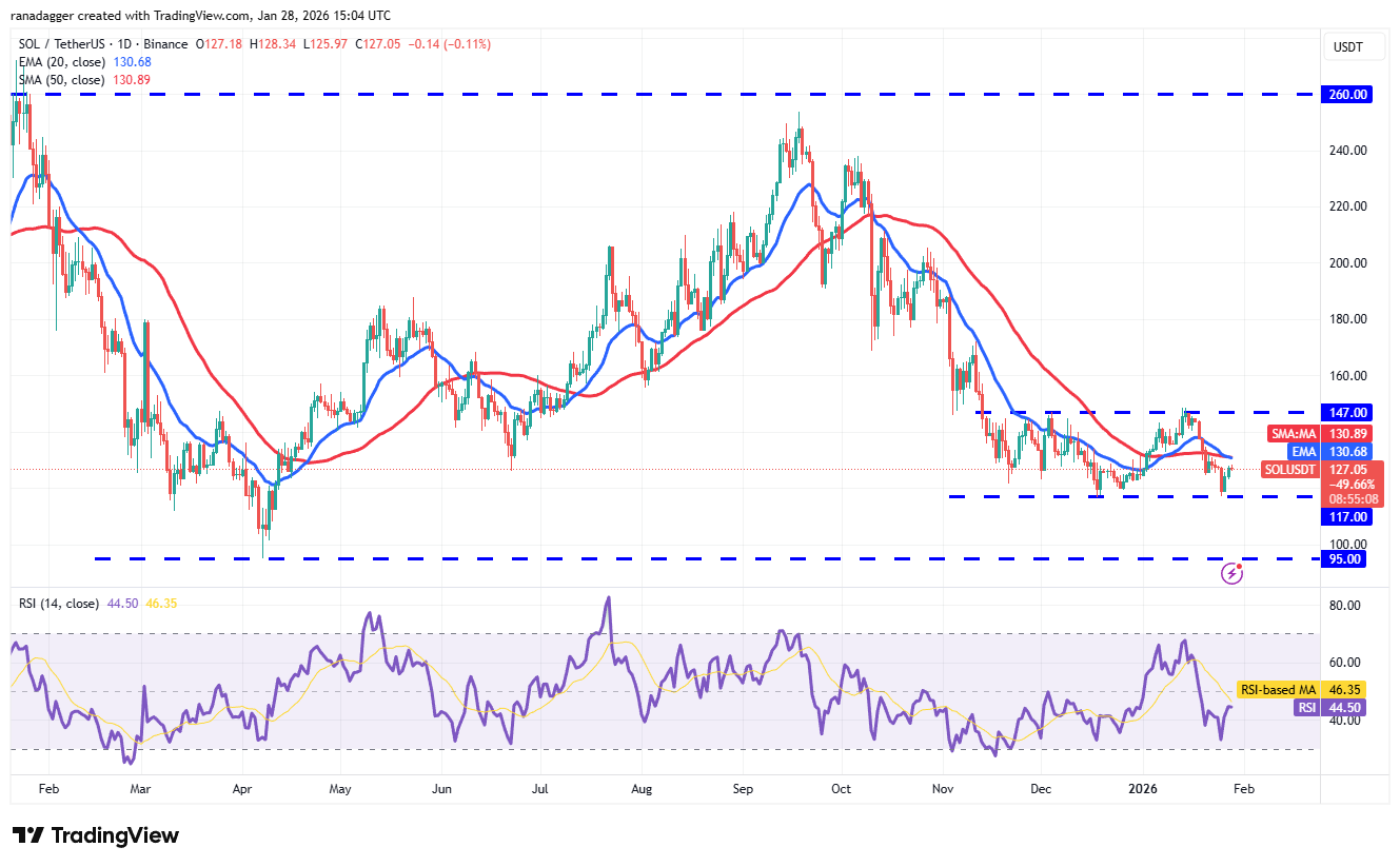 Solana (SOL) turned up from the $117 support on Monday, but the relief rally is likely to face selling at the moving averages.