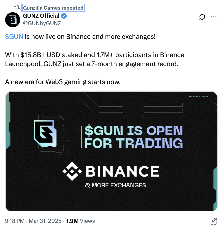 It is still early days for the token, which got plenty of hype. Speaking ahead of the launch, RR2 Capital co-founder Richard Seiler said that fans of the shooter game could “expect fireworks” and that the combo of Gunzilla Games and Binance was like “two giants supporting each other.”