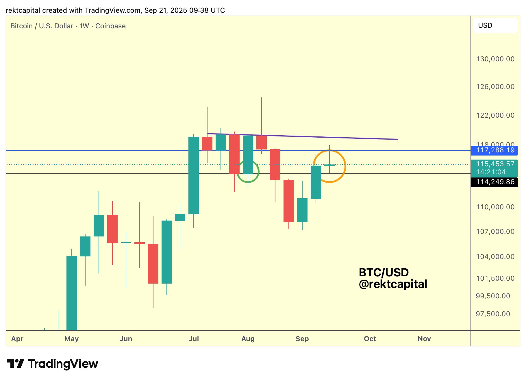 “If bulls are able to push Bitcoin above the $117,000 region, a rally could happen. Otherwise the plan will be a dump followed by a rally in Q4.”