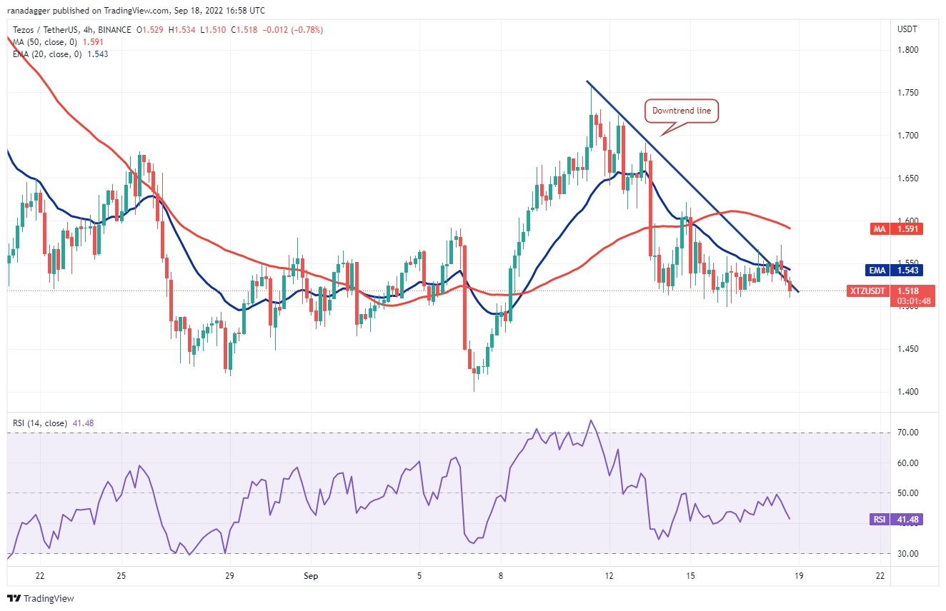 Tezos (XTZ) broke below the 20-day EMA ($1.57) on Sept. 13 but the bears could not pull the price to the support line of the symmetrical triangle. This indicates that buyers are accumulating on dips and not waiting for a deeper correction to make an entry. This increases the likelihood of a recovery in the near term.