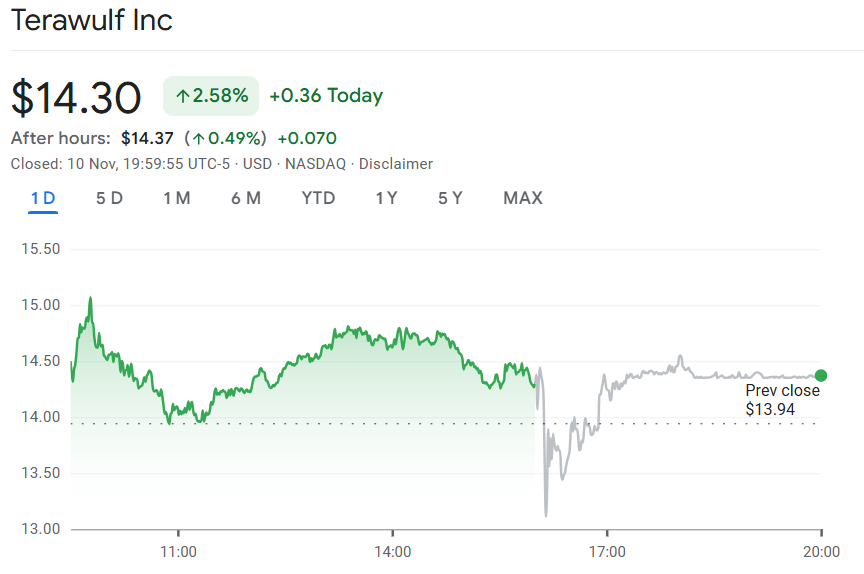In the Monday trading session, TeraWulf’s stock (WULF) initially rose to $14.85, representing a 6% increase over the previous close of $13.94.