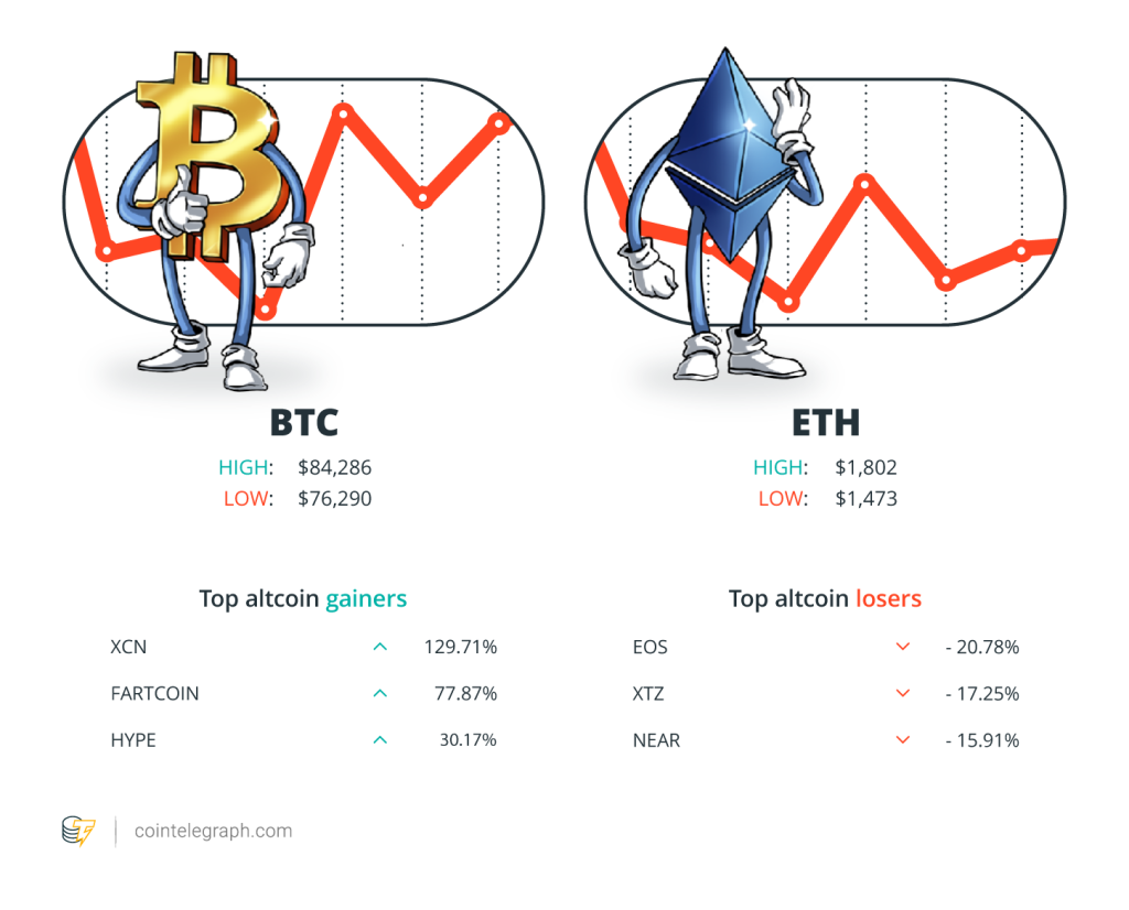 The top three altcoin losers of the week are EOS (EOS) at 20.78%, Tezos (XTZ) at 17.25% and NEAR Protocol (NEAR) at 15.91%. For more info on crypto prices, make sure to read Cointelegraph’s market analysis.