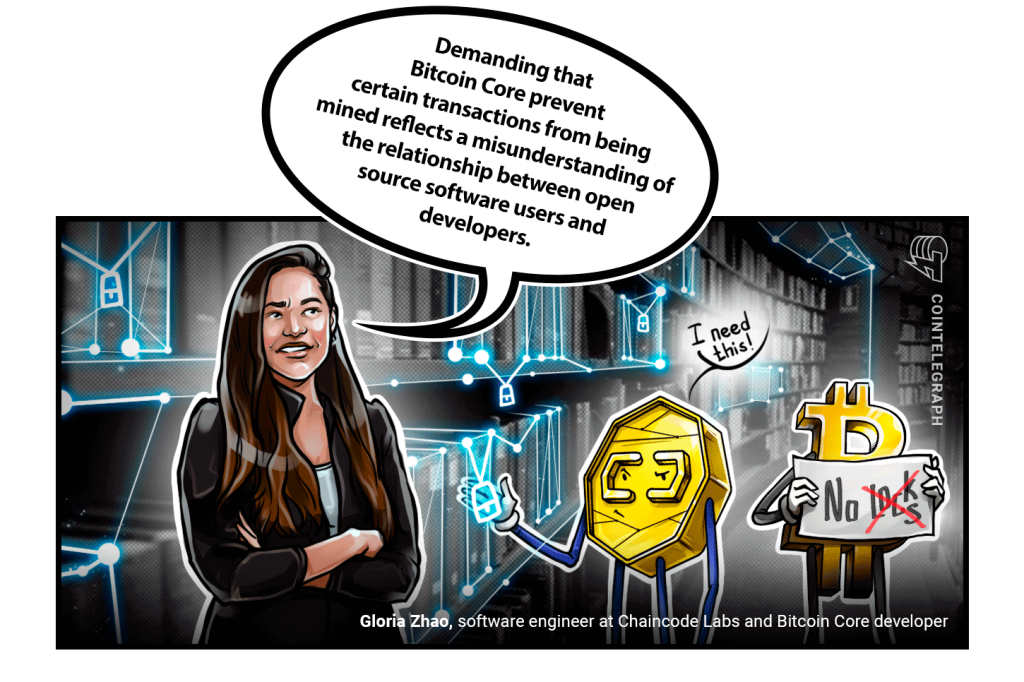 “Demanding that Bitcoin Core prevent certain transactions from being mined reflects a misunderstanding of the relationship between open source software users and developers.”