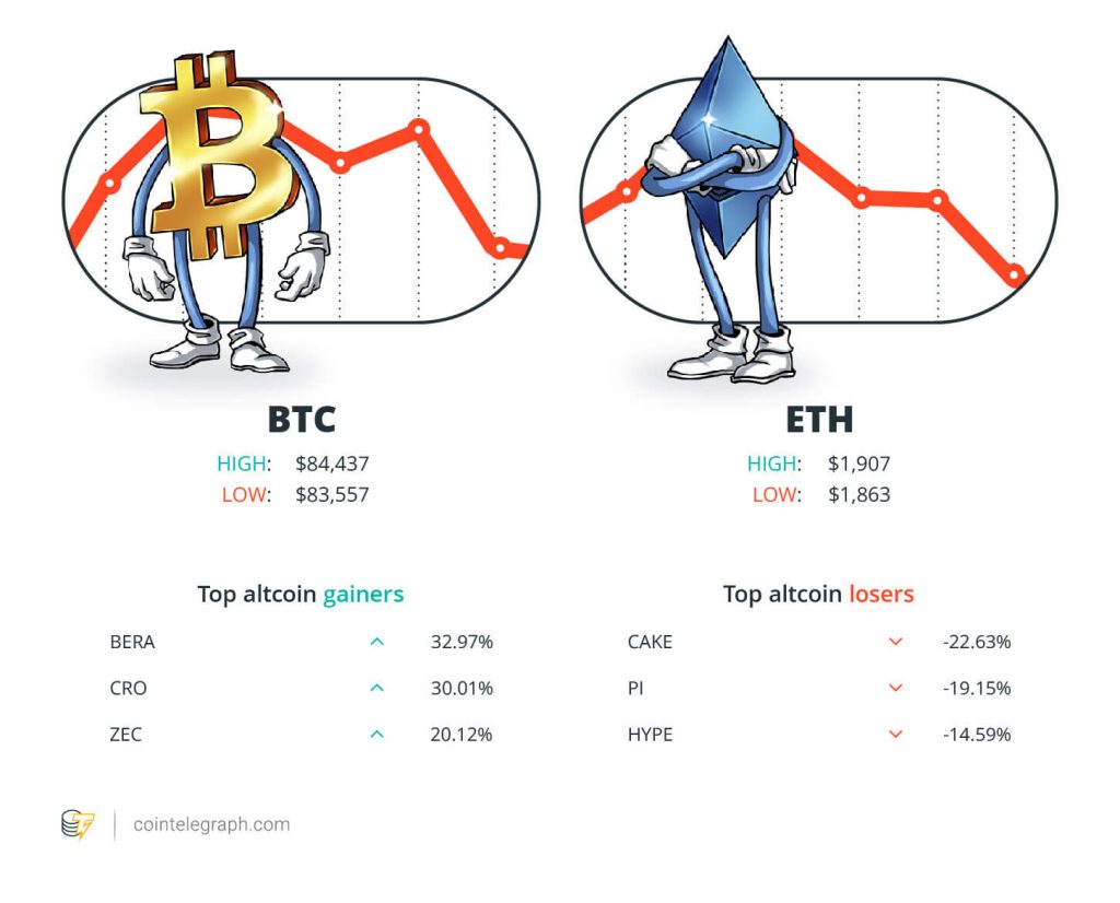 The top three altcoin losers of the week are PancakeSwap (CAKE) at 22.63%, Pi (PI) at 19.15% and Hyperliquid (HYPE) at 14.59%. For more info on crypto prices, make sure to read Cointelegraph’s market analysis.