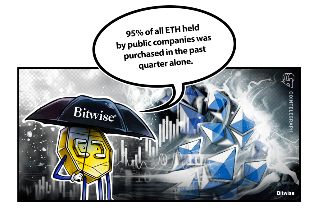 “95% of all ETH held by public companies was purchased in the past quarter alone,” Bitwise Invest said on Wednesday, referring to the $19.13 billion held in public treasuries, equivalent to roughly 4% of Ether’s total supply.