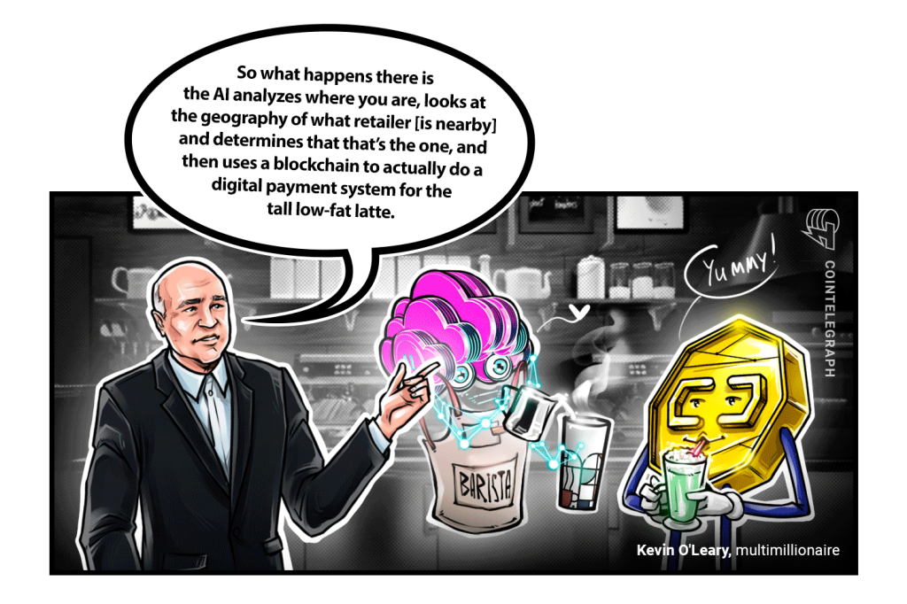 “So what happens there is the AI analyzes where you are, looks at the geography of what retailer [is nearby] and determines that that’s the one, and then uses a blockchain to actually do a digital payment system for the tall low-fat latte.”