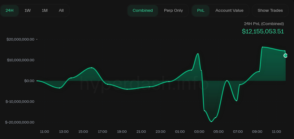 The X account “James Wynn” claims to be behind the position, which is now up $36 million on the trade, data from Hypurrscan’s block explorer shows.