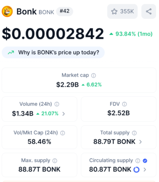 The technical charts are looking good too. Bonk recently smashed through a key resistance level of $0.000024 and is now trading above $0.000027. If it can hold at that new level, the price could push on further.