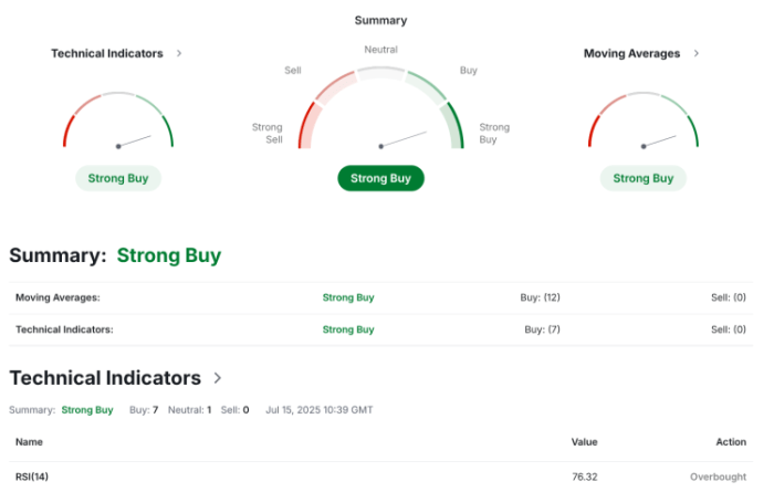 Here’s a heads-up for traders: the daily Relative Strength Index (RSI) is a bit high at 76. That’s in the ‘overbought’ zone, so don’t be surprised if there’s a dip coming.