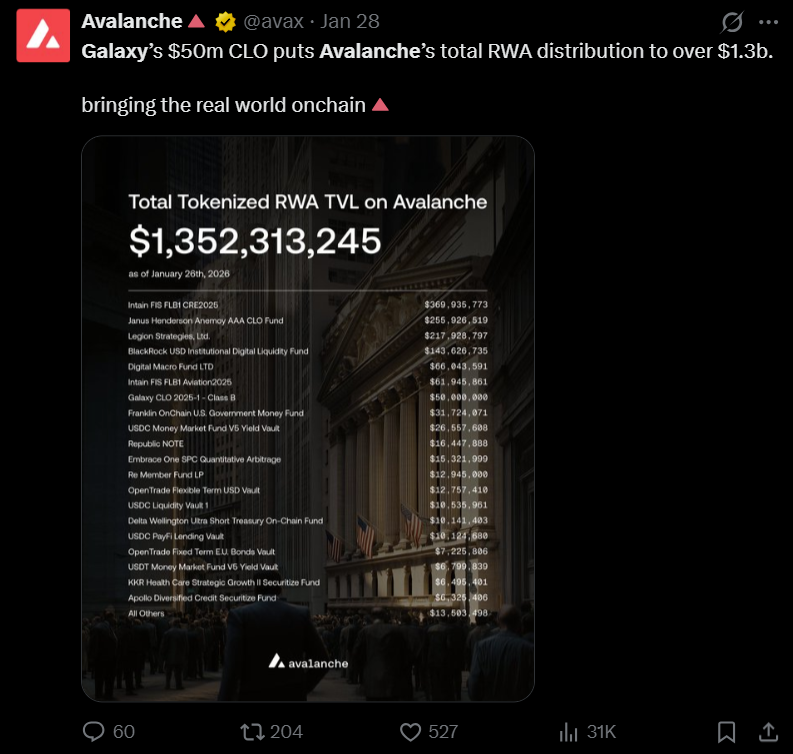 Galaxy completes $75 million onchain credit deal on Avalanche