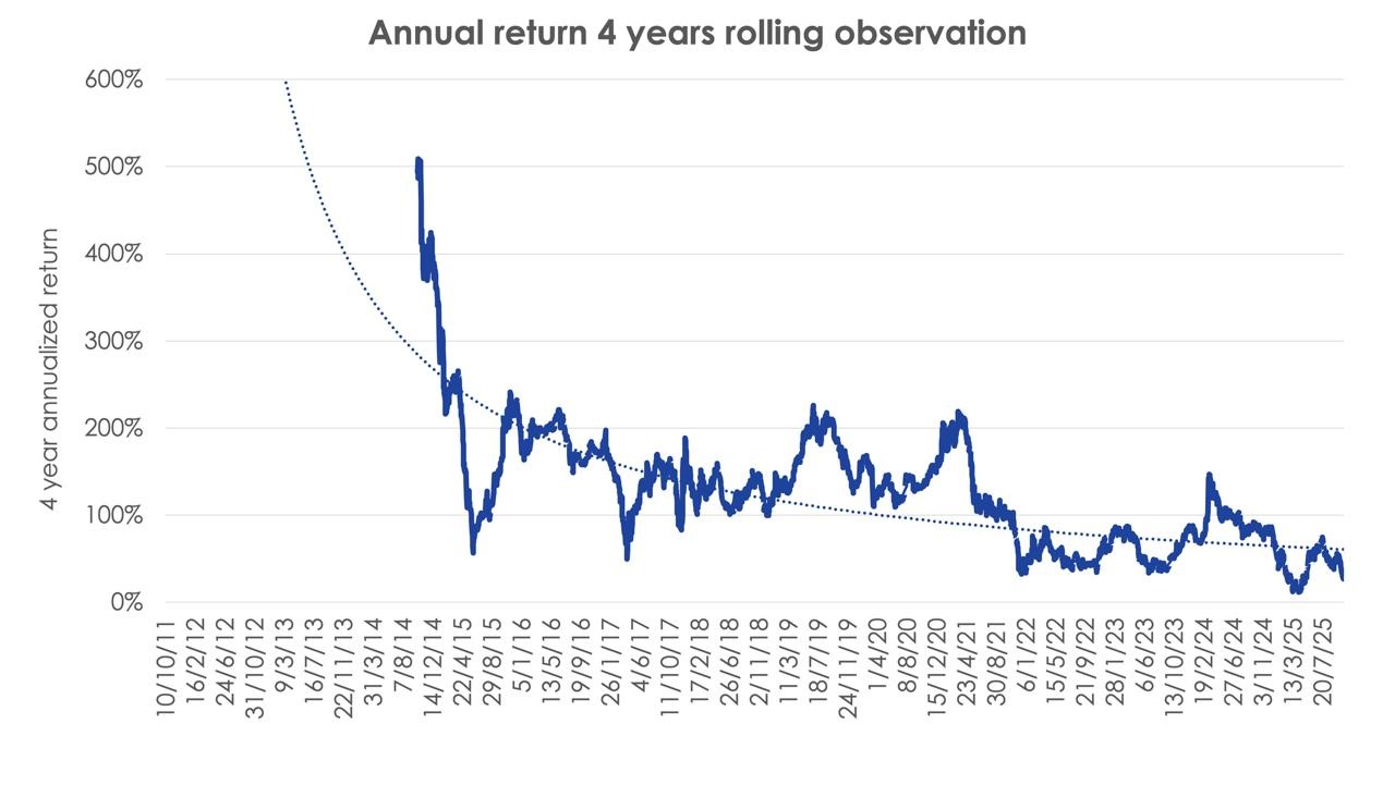 4-year Bitcoin annual rolling returns. Source: Diaman Partners