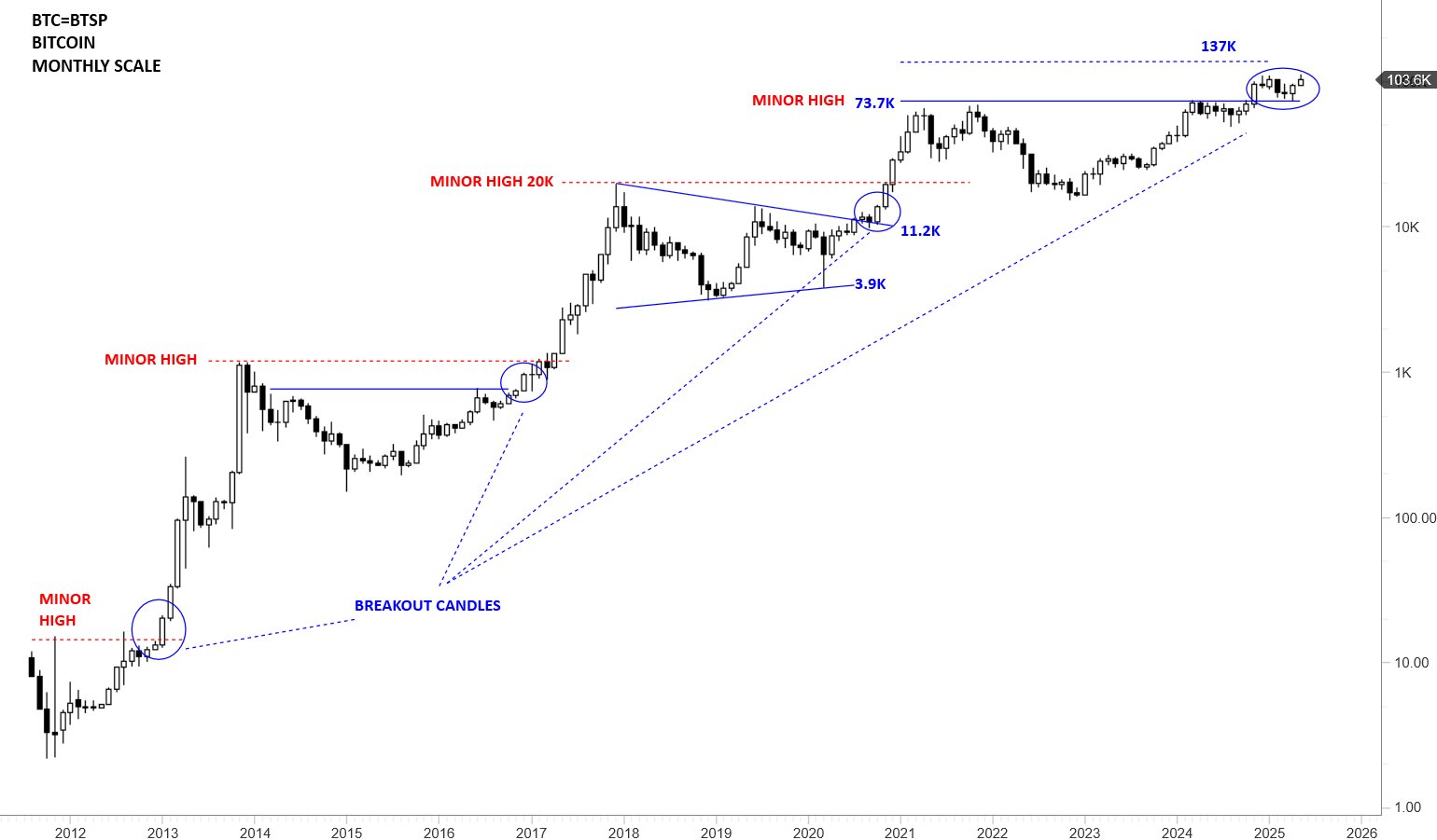 “Bullish interpretation intact as long as price holds above 73.7K,” he told X followers about the monthly BTC/USD chart.