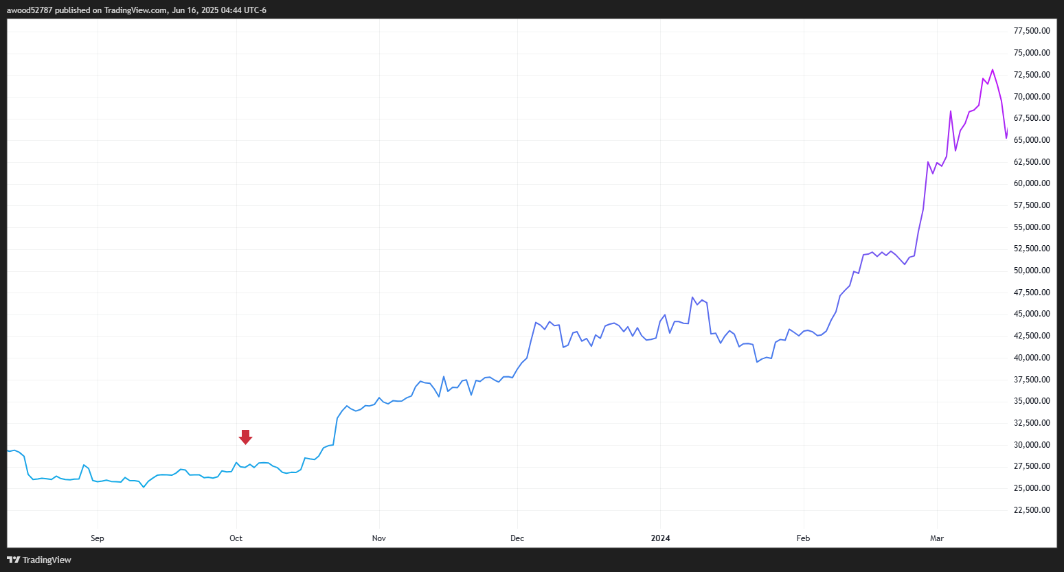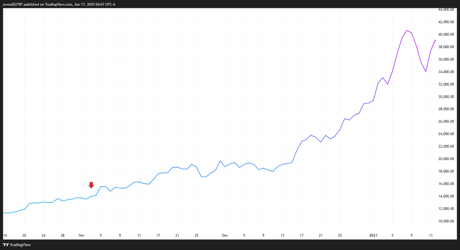 A month later, Bitcoin’s price would reach its then-all-time high of $69,000.