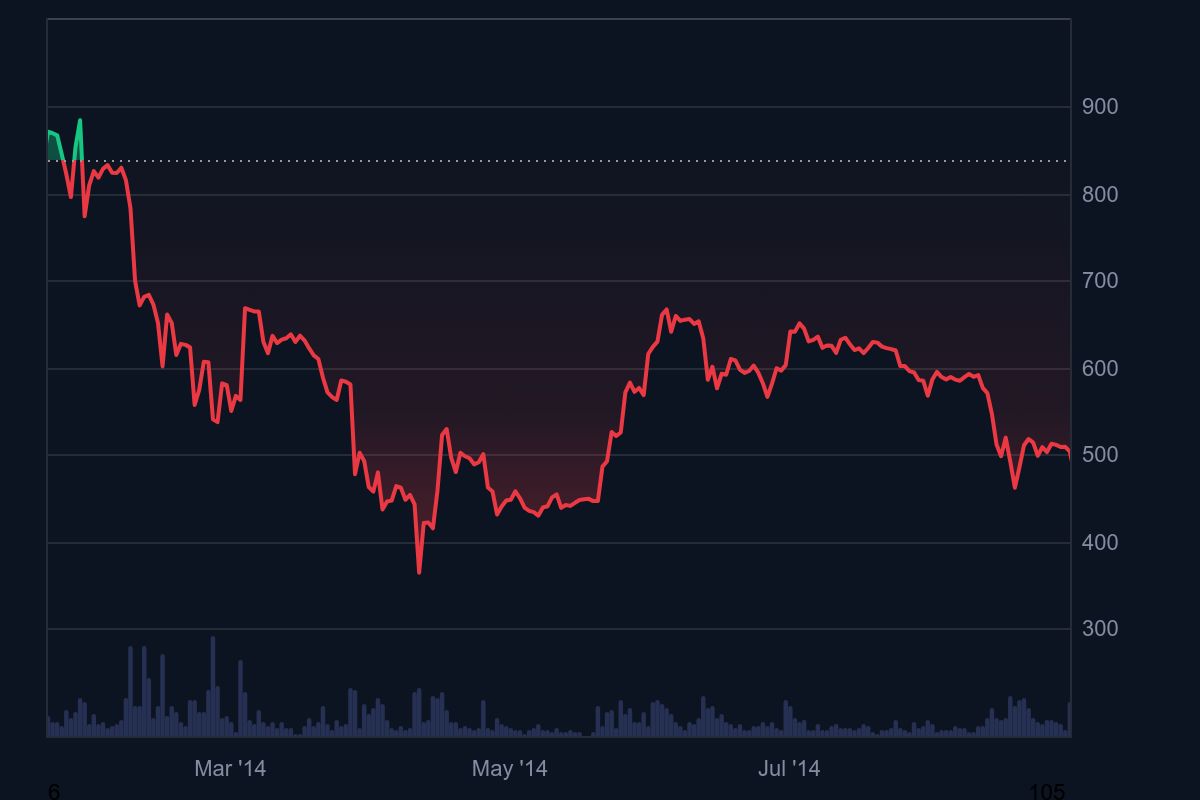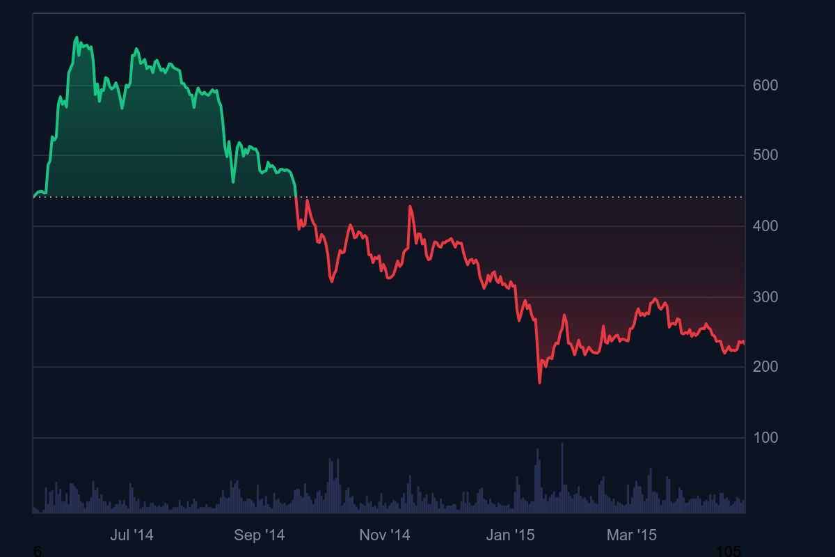 In 2013, Bitcoin went on what some consider its first major bull run. It started the year at $13, crossing $100 by April and $200 by October. The end of the year saw it close out over $1,000.