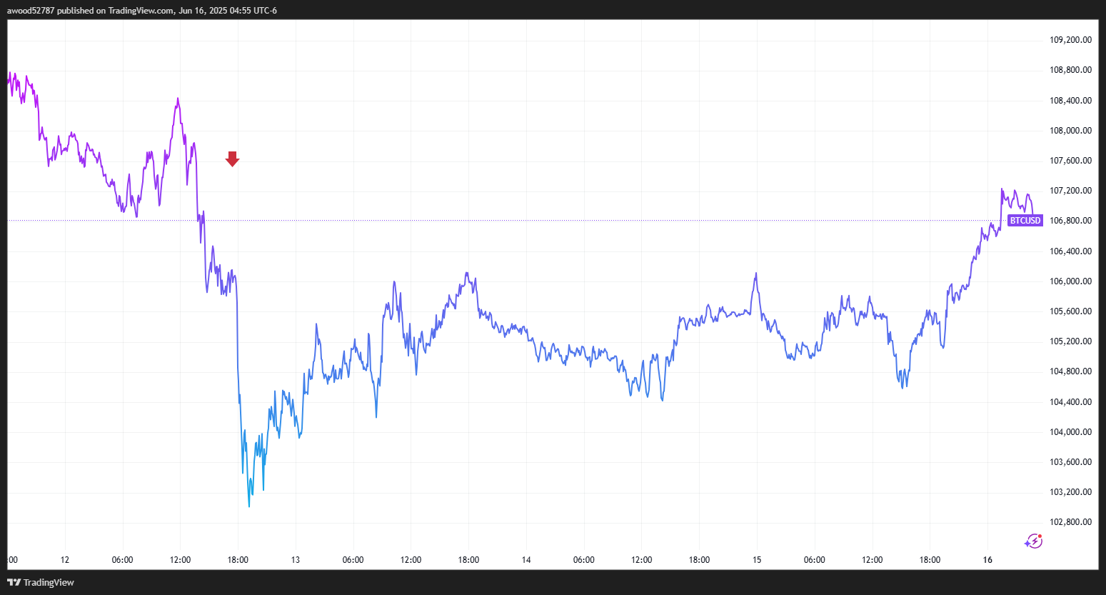 While the asset saw a brief drop immediately after the bombings began, the price has largely recovered. Crypto analyst Za said, “Bitcoin does not seem concerned about the Israel and Iran conflict (yet).”