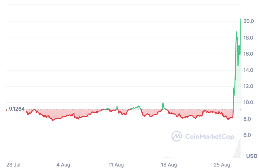 NMR token price surges on JPMorgan news. Source: CoinMarketCap