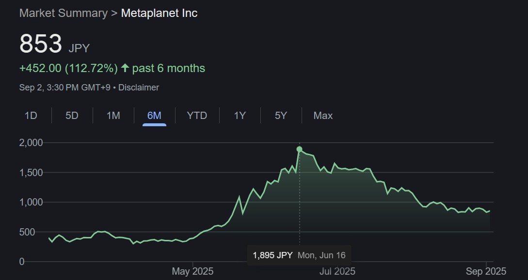 Metaplanet stock prices in the last six months. Source: Google Finance