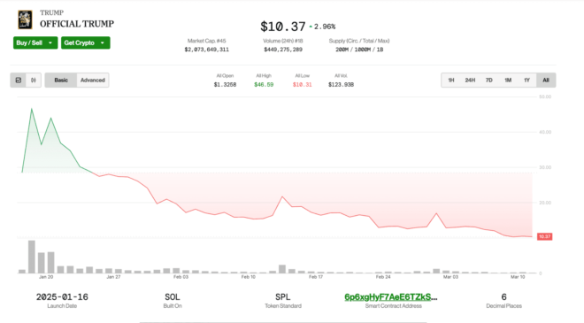 Figure 1: CoinDesk view of $TRUMP which plummeted shortly after launch.