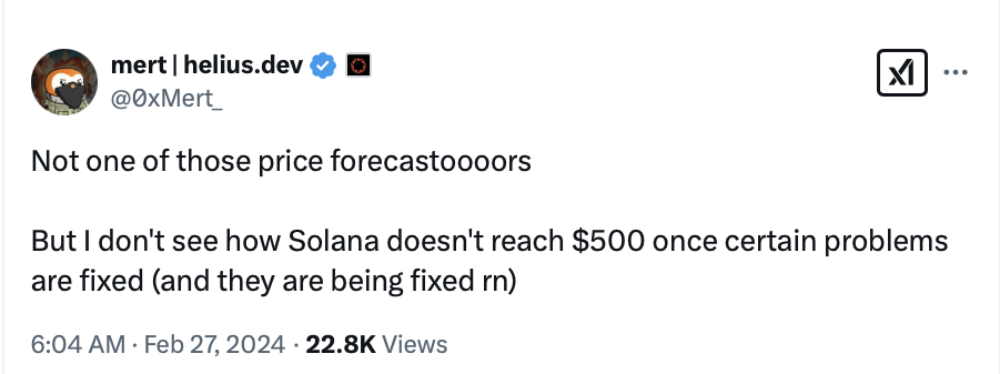 It’d be surprising if he weren’t super bullish on Solana, given that he’s the best-known SOL proponent on X and that Helius Labs is a developer platform built for Solana projects.