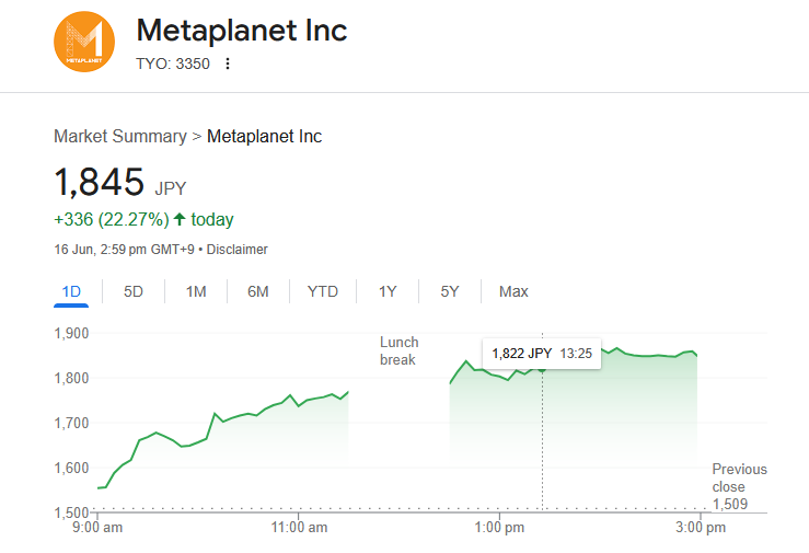 The back-to-back announcement has seen the price of Metaplanet’s share soar drastically over the day.
