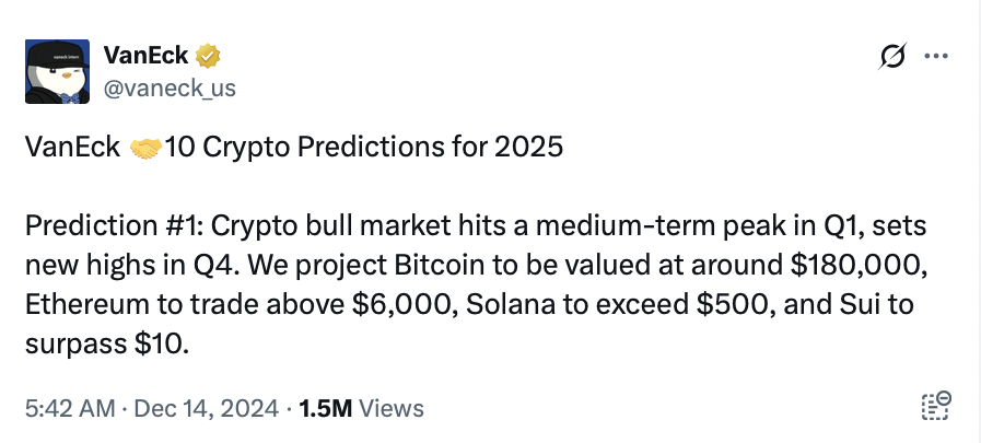 Kennelly’s price prediction matches the same 2025 target that VanEck projected for Solana back in December 2024.