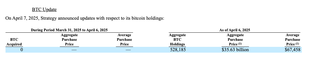 In a filing with the US Securities and Exchange Commission on April 7, Strategy announced it made no Bitcoin (BTC) purchases during the week of March 31 to April 6.