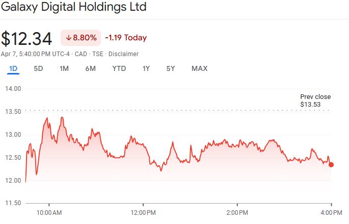 Galaxy Digital’s share price on the TSX was down 8% after the TSX closed. Source: Google Finance