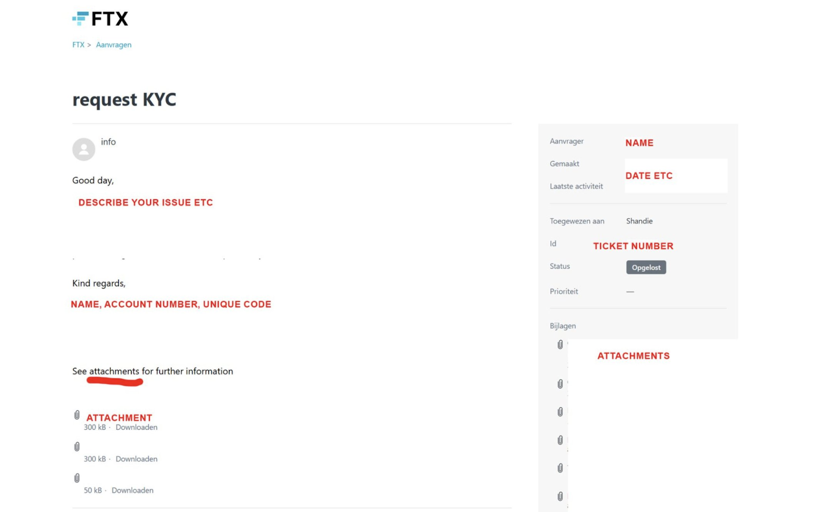 Impacted users should email FTX support (support@ftx.com) to receive a ticket number, then log in to the support portal, create an account, and re-upload the necessary KYC documents.