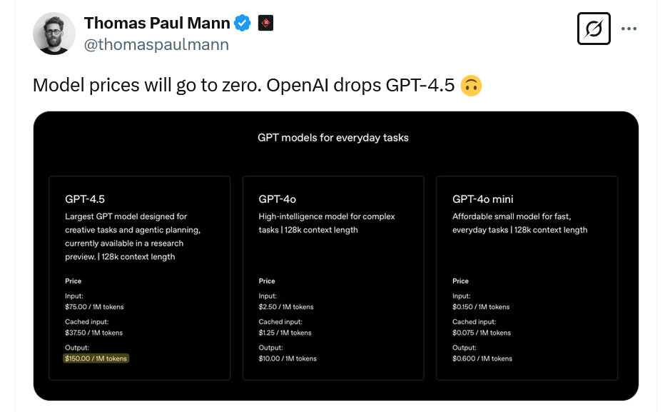 “OpenAI GPT-4.5 pricing is insane. What on earth are they even thinking??”