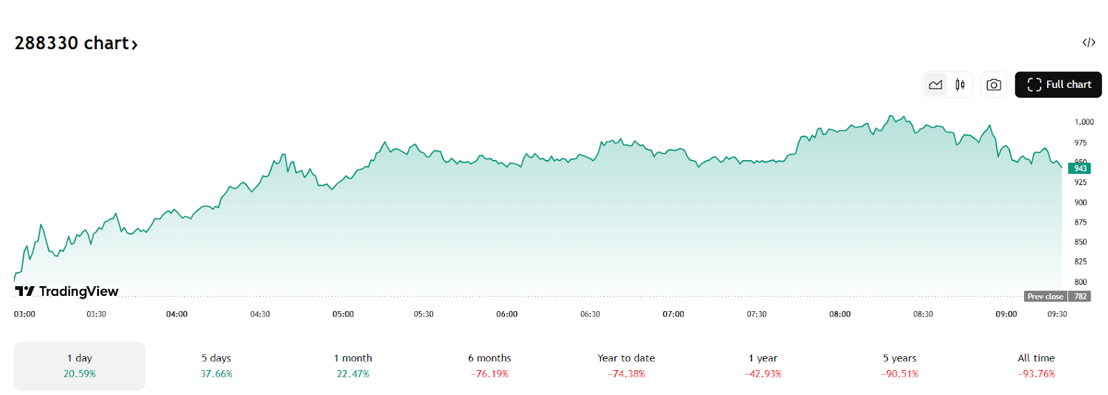 Following the announcement, the firm’s stock price rose over 84% on the daily chart, reversing its one-year downtrend of 32%, Google Finance data shows.