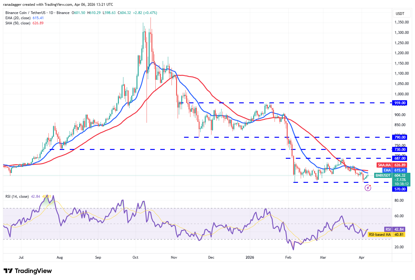 BNBโs (BNB) bounce off the $570 level has reached the moving averages, where the bears are expected to step in.