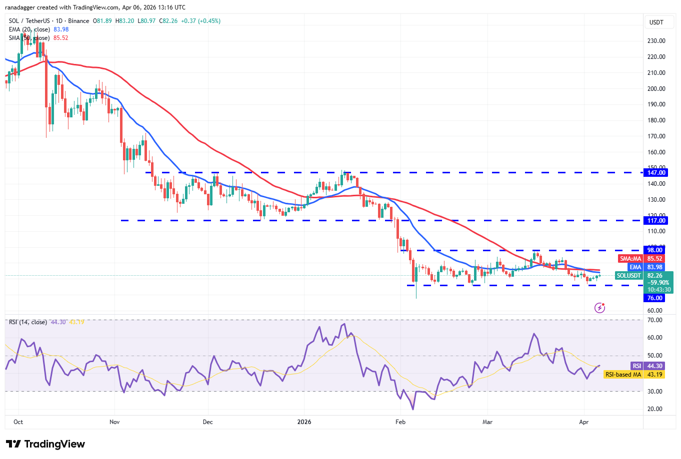 Solana (SOL) has been oscillating inside the $76 to $98 range for several days, indicating a tough battle between the bulls and the bears.